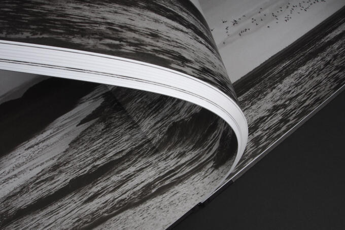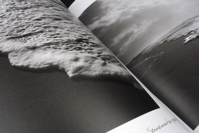 Was ist zu tun, wenn 4 Farben eine zu viel und viel zu bunt sind? Ganz einfach. Erst mal alle Farbwerke der Druckmaschine waschen und von den ganzen Bundfarben befreien. Jetzt können die Druckzylinder durchatmen und sind bereit für ein kleines Meisterwerk. Aus Pantone Black, Prozessschwarz und Pantone warm grey wird gleich ein wunderbarer Triplex entstehen. Jetzt fehlt nur noch das perfekte Medium um die Eindrücke von Herrn von Wiedenbeck wiederzugeben. Das Meer vor Sylt kann sich rauh aufbäumen und im nächsten Augenblick glatt wie eine Glasscheibe sein. Genau so sollte das Papier sein. Ein Mix aus Pergraphica und Magno Matt machen es möglich.